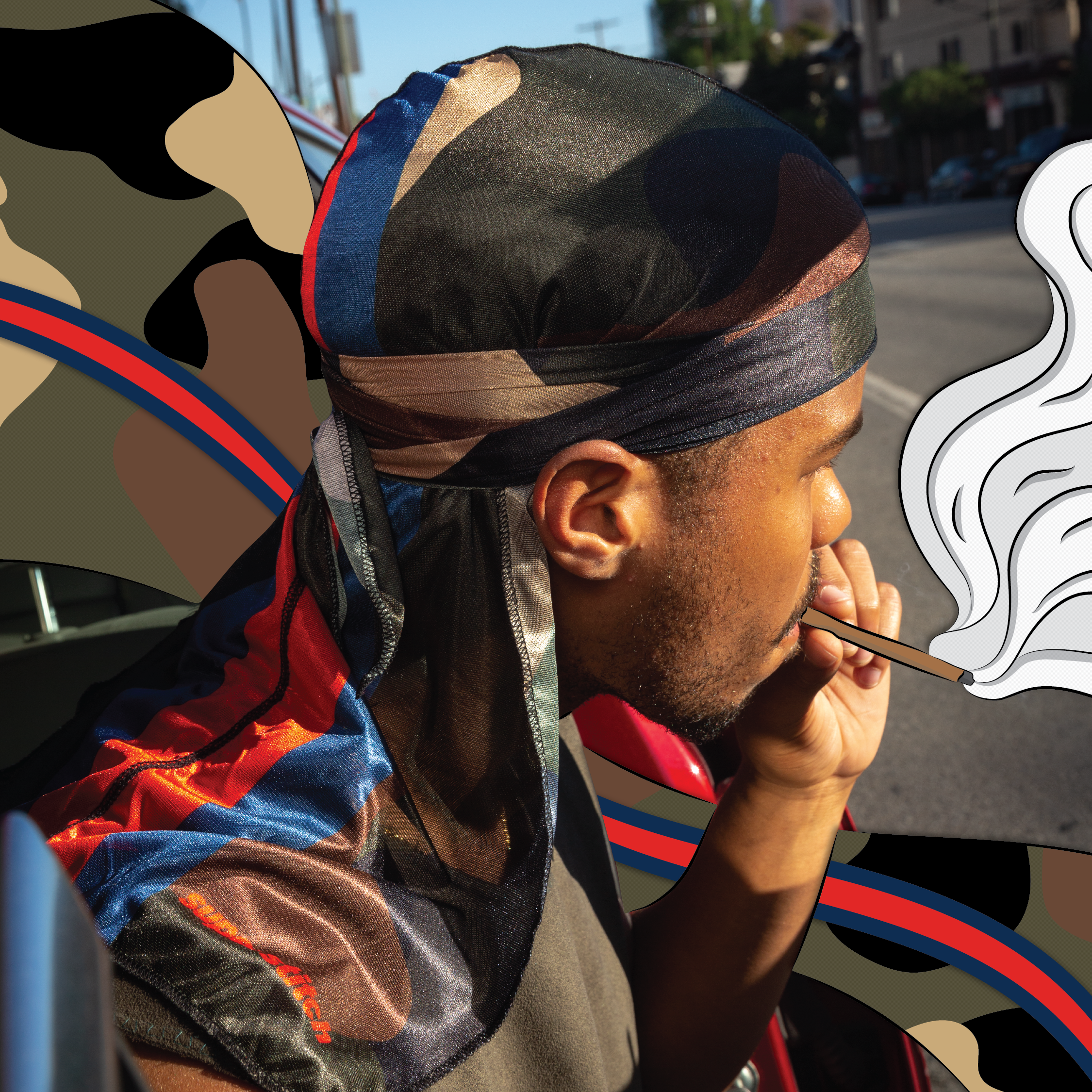 These two illustrations were created as part of an Instagram campaign that combined photography and digital art. Using Adobe Illustrator, I incorporated elements from the durags and the brand’s distinctive aesthetic, drawing directly over the photographs to merge urban style with product identity. The final pieces captured the spirit of the brand cool, bold, and visually engaging while highlighting the unique style of each durag.